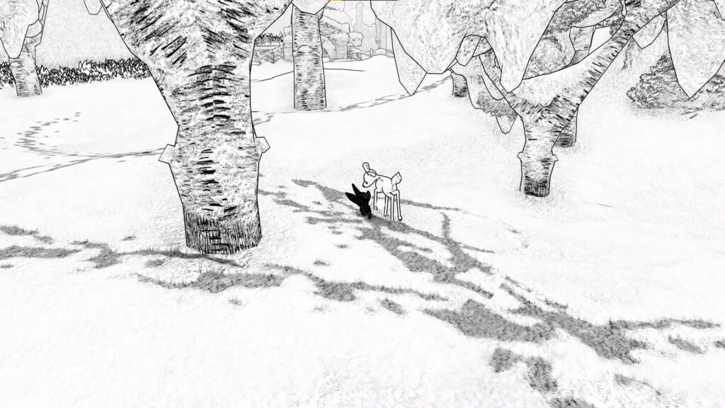 手描きのようなモノクロームの世界で、迷子になったオオカミの子とシカの子が協力して家族を探す旅に出る。 テキストは一切ない。異なる能力を持つ二匹(体が小さく狭い場所に入れるオオカミ、背が高くジャンプ力のあるシカ)が、互いの短所を補い合うことで道が開ける。 敵対するはずの種族が絆を育んでいく様子は、言葉以上に雄弁だ。短時間でクリアでき、難易度も低いため、普段ゲームをしないパートナーとの入り口としても最適。