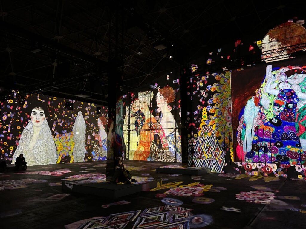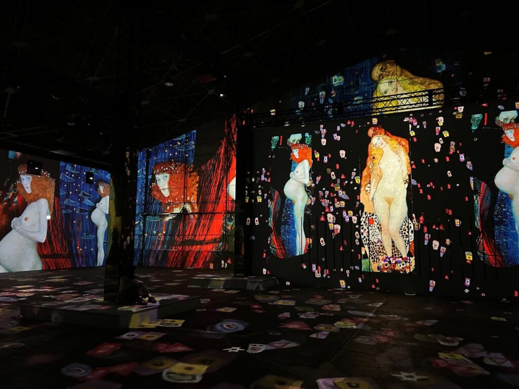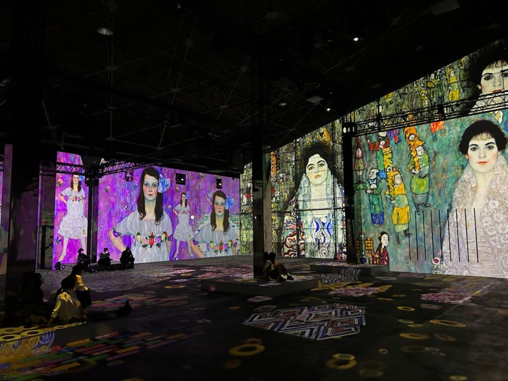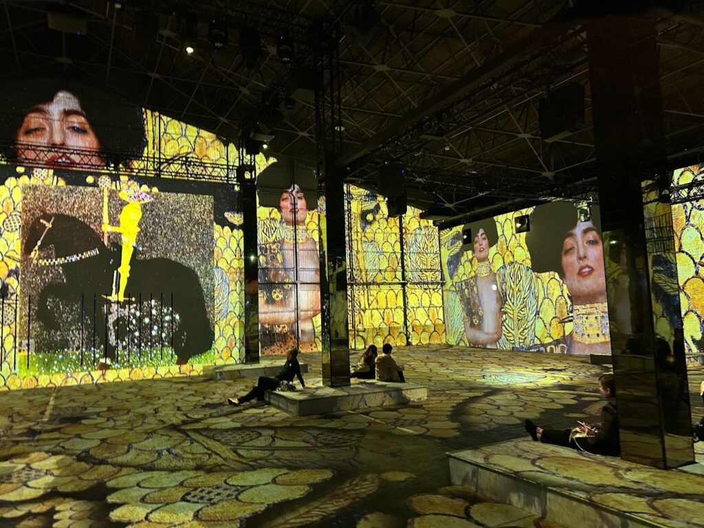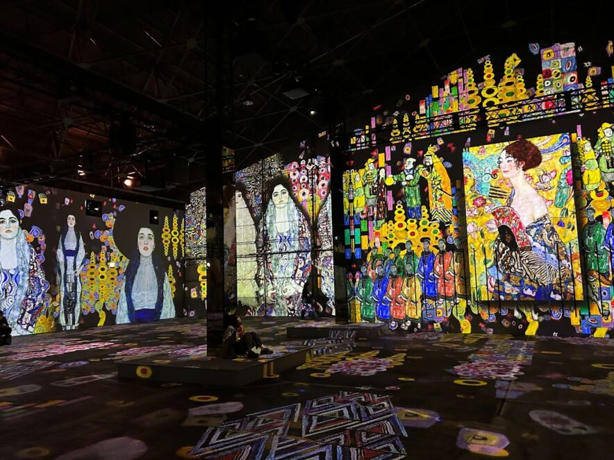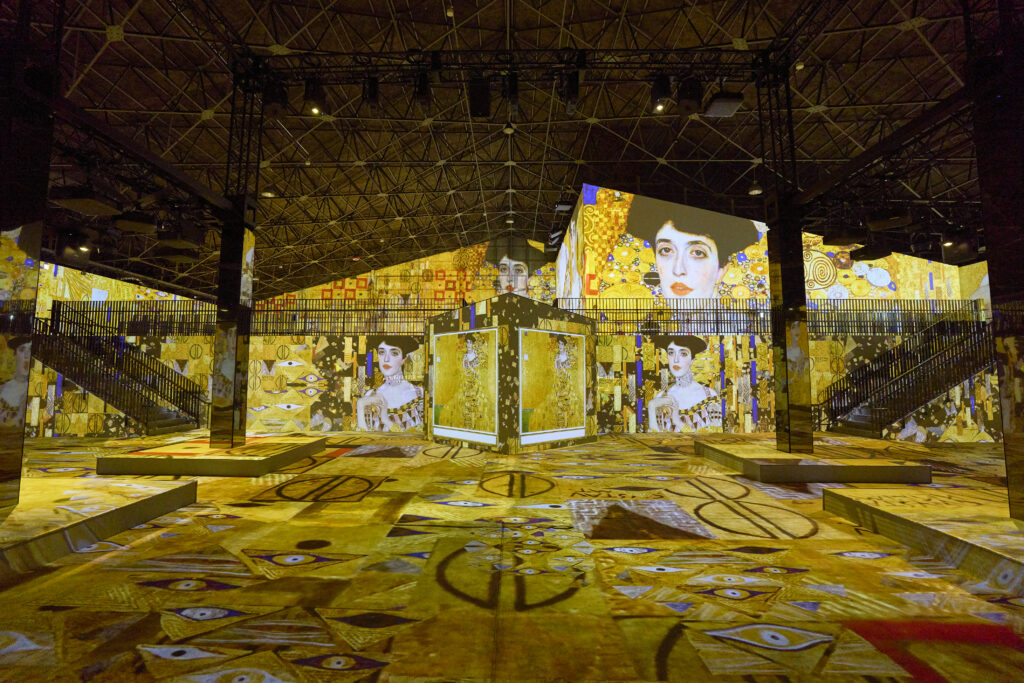 空間演出を手がけたのは、没入型アートの先駆者 ジャンフランコ・イアヌッツィ。冷たい壁面にクリムトの黄金が映し出される瞬間、倉庫は静かに、しかし確実に「巨大な絵画の内部」へと変わっていきます。