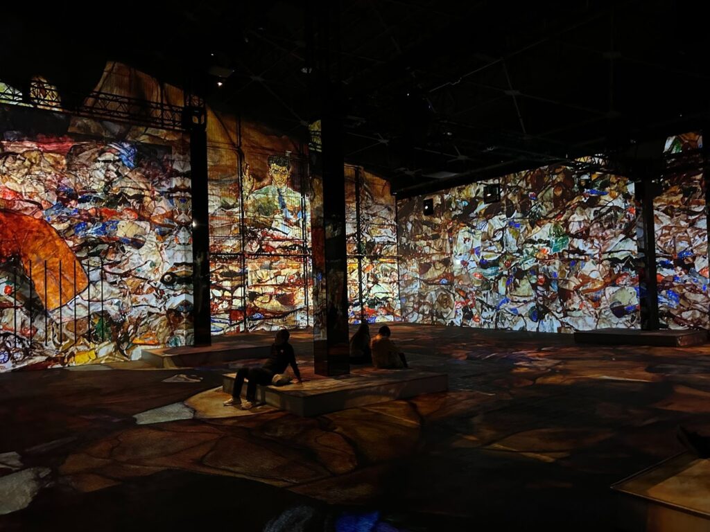 会場は約1,800㎡の巨大倉庫。ここで展開されるのは、絵画を壁に並べる従来型の展示ではありません。視覚と音響、そして空間演出が一体となる 没入型(イマーシブ) のアート体験です。