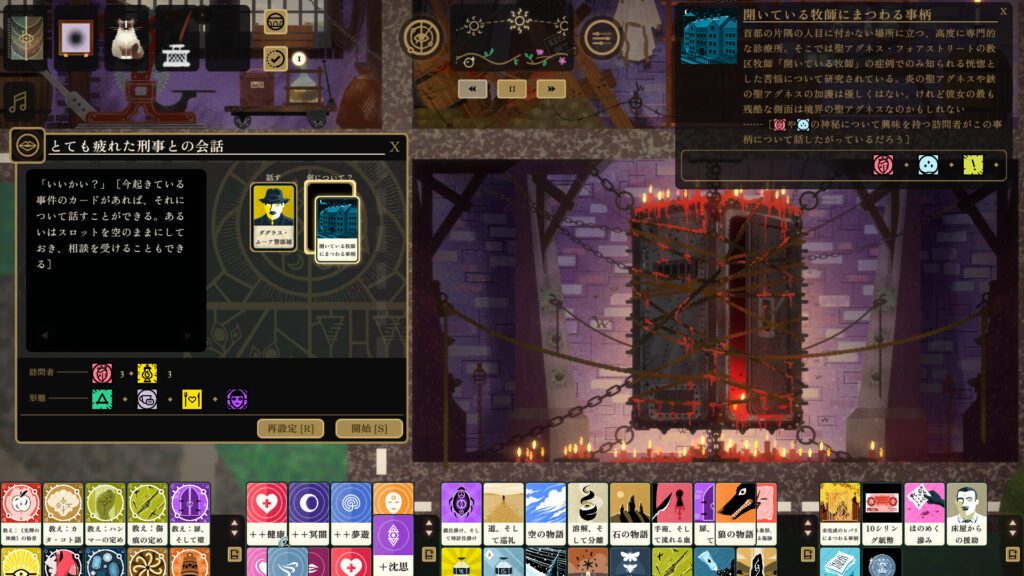 インディーゲーム界では今、こうした「オカルト × マネジメント(管理)」というジャンルが熱い支持を集めている。 リソースを管理し、カードを引き、手順を間違えれば即座に破滅(あるいは死)が待っている緊張感。それは、綱渡りのような背徳的な楽しさに満ちている。